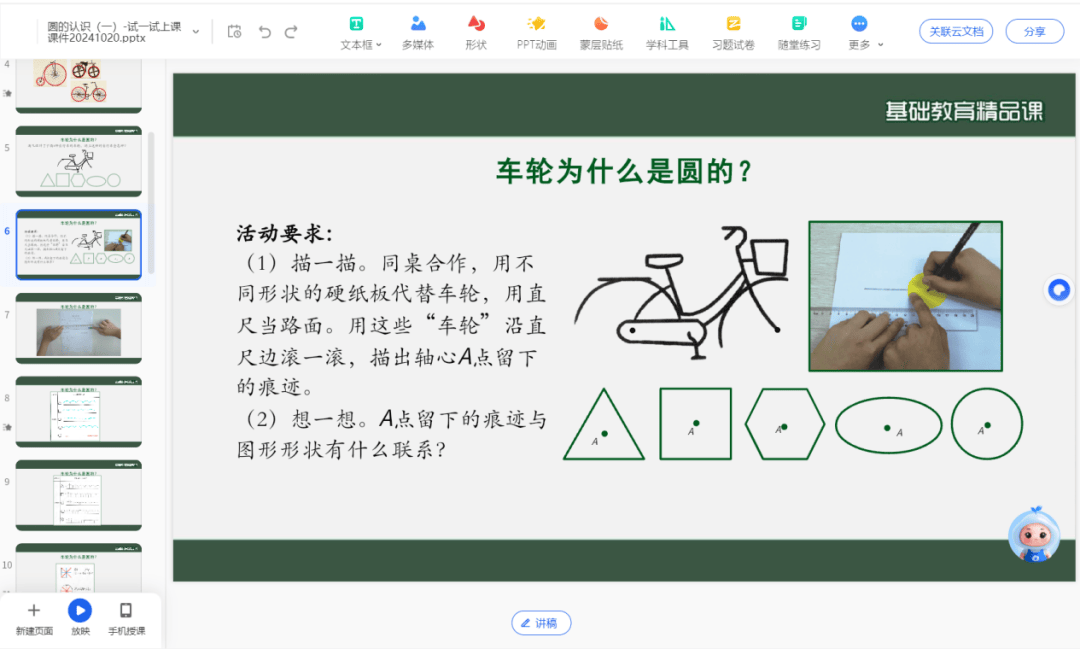 (1)无缝嵌入优质资源,将筛选的名师微课、《生活中的圆》趣味视频插入对应教学环节;