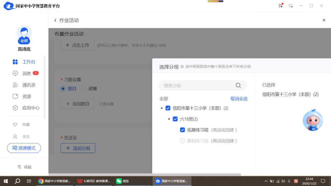 基于学生在课堂上对知识点掌握的不同程度,教师在课后通过班级群定向推送分层任务:为基础薄弱学生推送国平台题库中的基础巩固题及微课复习链接,为学有余力的学生推送拓展探究题及拓展资源链接,实现“同一课件、不同路径”的个性化教学,确保各层次学生均获得适配支持。