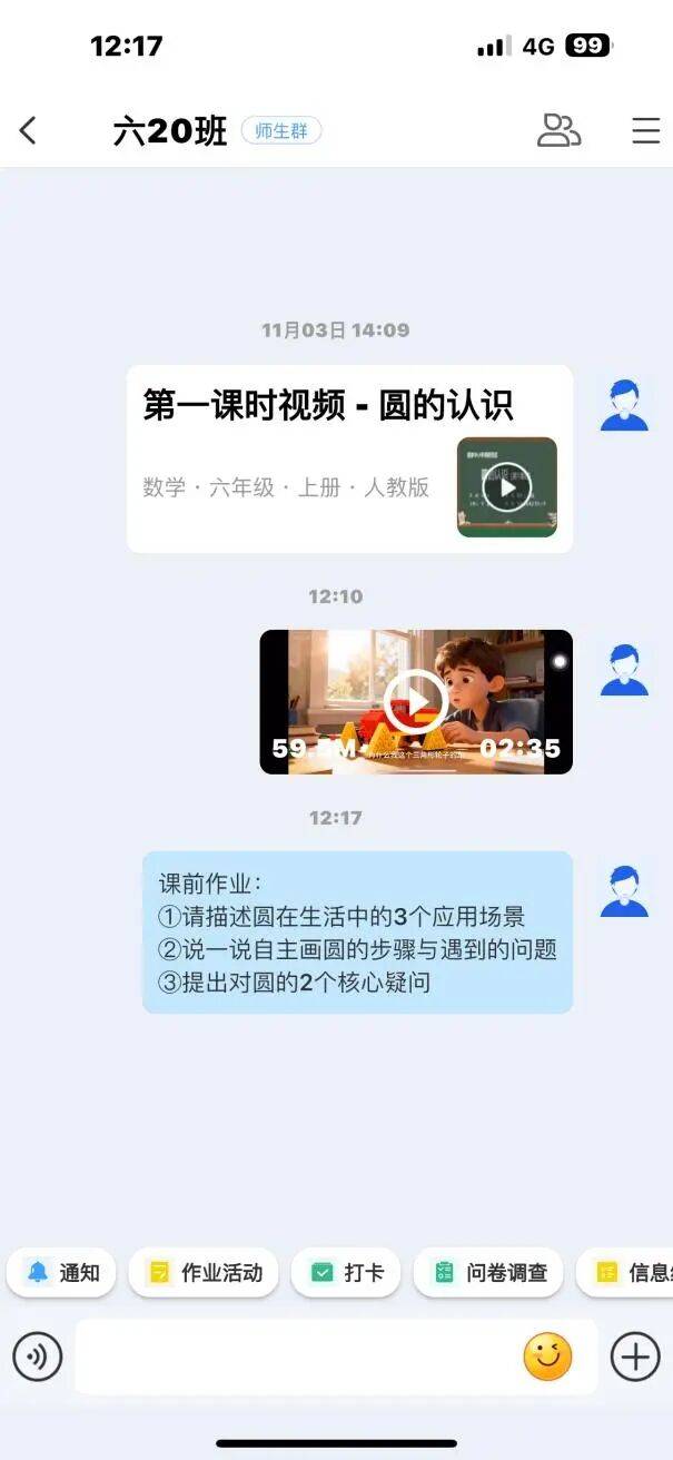 在备课启动阶段,教师通过国平台班级群定向发布前置学习任务,包含观看国平台内置的《生活中的圆》趣味微视频,同步发放结构化观察记录单和调查问卷,其中记录单用于学生自主梳理“圆在生活中的3个应用场景”“自主画圆的步骤与遇到的问题”,调查问卷聚焦“对圆的2个核心疑问”及画圆工具认知、操作难点等维度设计,引导学生主动梳理已有认知、暴露潜在困惑,为后续梳理个性化疑问提供全面且精准的原始数据支撑。