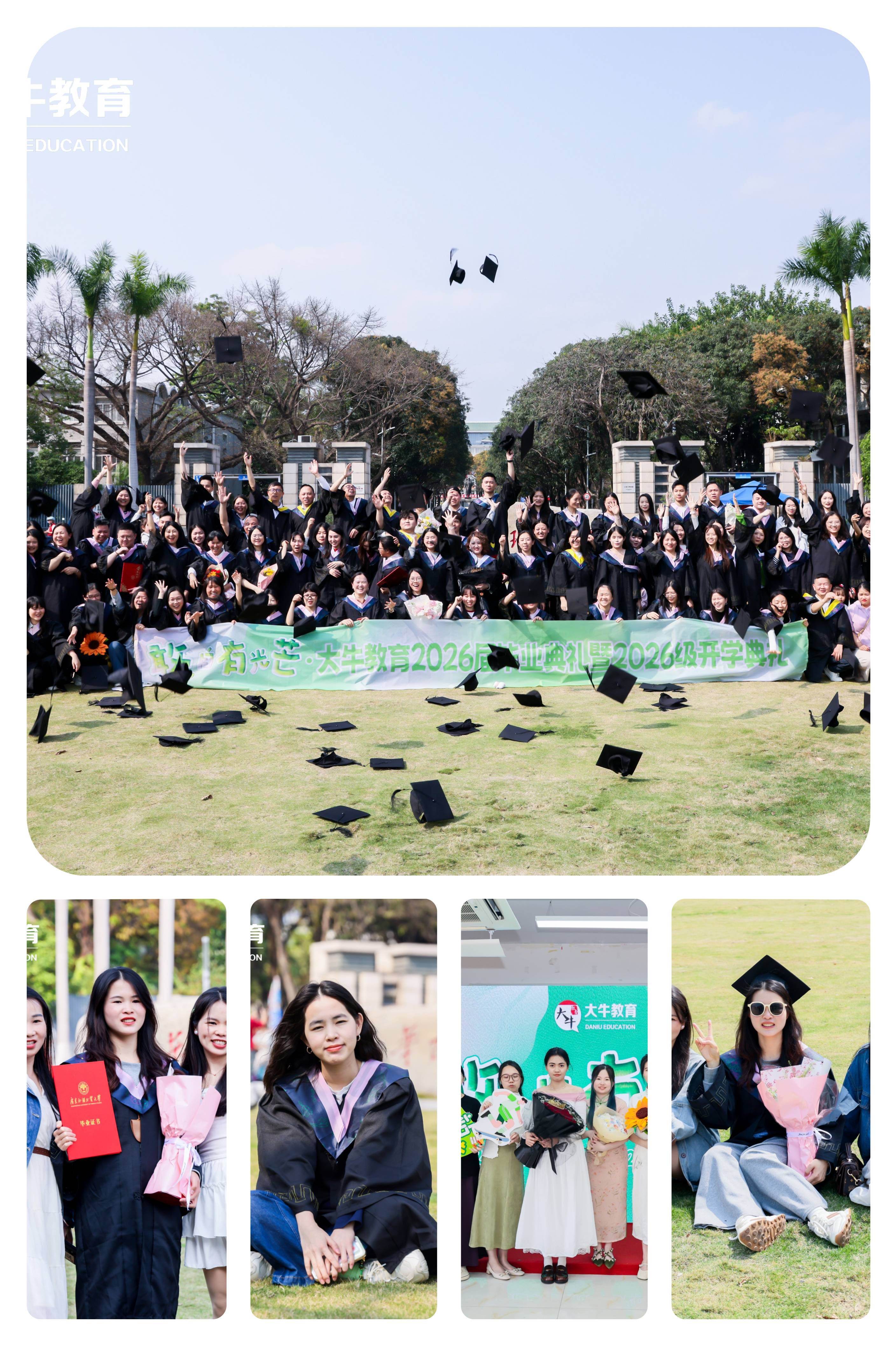 春回大地,万象更新。2026年3月8日,一个充满纪念意义的日子,大牛教育2026届成人高考毕业典礼暨2026级新生开学典礼,在位于华南理工大学国家大学科技园内的五山校区隆重举行。这场以“敢,自有光芒”为主题的盛会,不仅是一场庄重的仪式,更是一次梦想的交接与传承,见证了耕耘的收获,也开启了逐梦的新程。