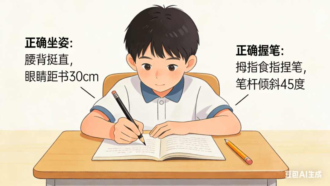 老师和家长要及时关注孩子的身高变化,对应调整书桌和椅子的高度,确保符合身高。