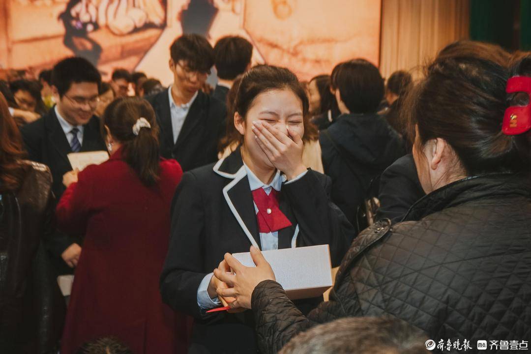 父母之爱深沉,儿女之心炙热。现场播放的学子家书与父母祝福视频,道尽感恩与牵挂。在温情音乐中,学子与父母鞠躬致谢,交换精心准备的礼物,一个拥抱、一份心意,见证成长与蜕变。