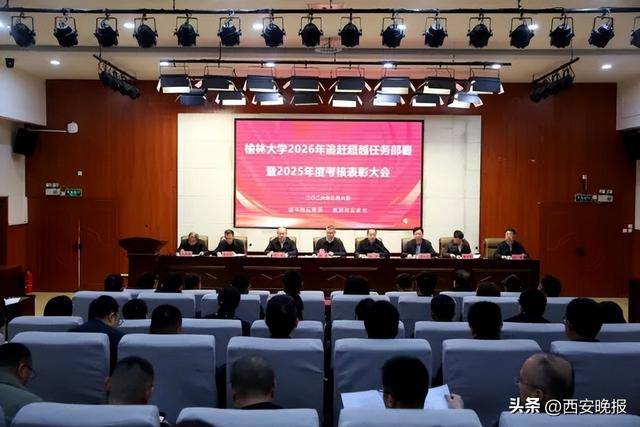 3月8日,榆林大学在逸夫楼一楼报告厅召开2026年追赶超越任务部署暨2025年度考核表彰大会。校党委书记康伟讲话,党委副书记、校长付峰主持。