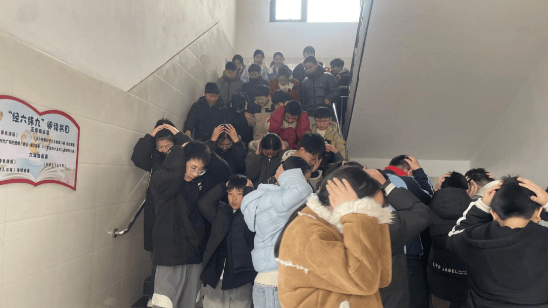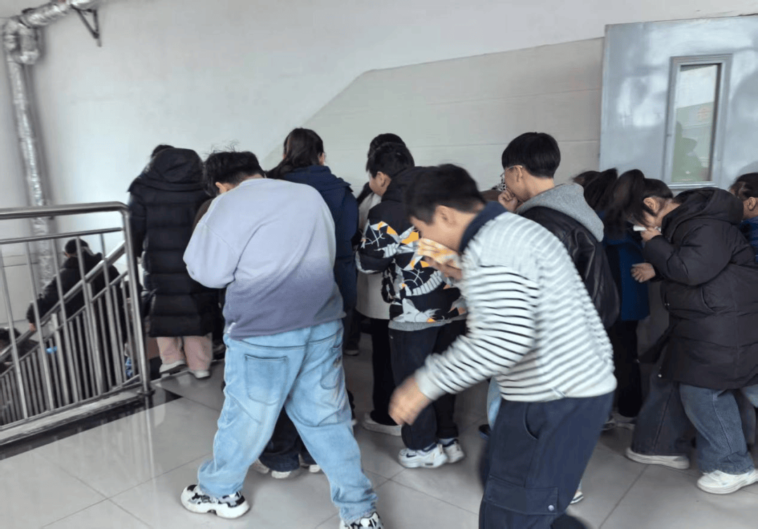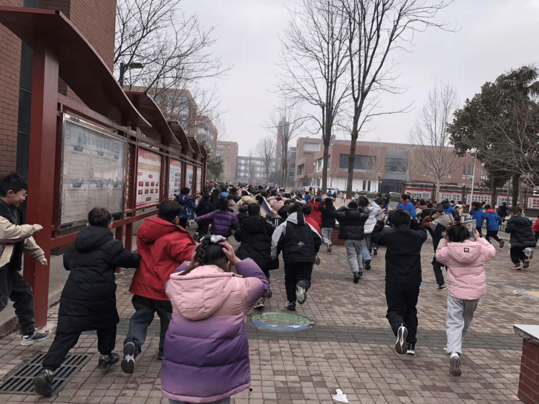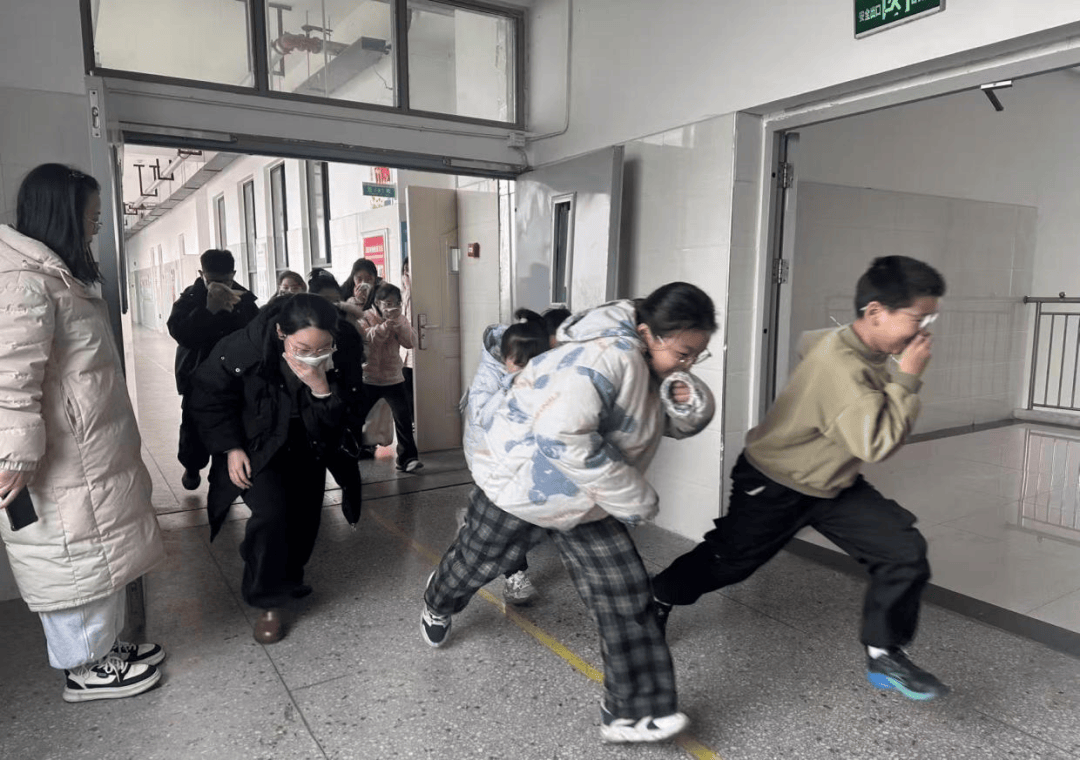 上午10:20,演练信号准时响起。在老师们的有序指挥下,全体学生弯腰护头、快速排队,沿着预定路线稳步撤离。值守教师全程引导,严控行进速度,有效规避了拥挤、踩踏风险。