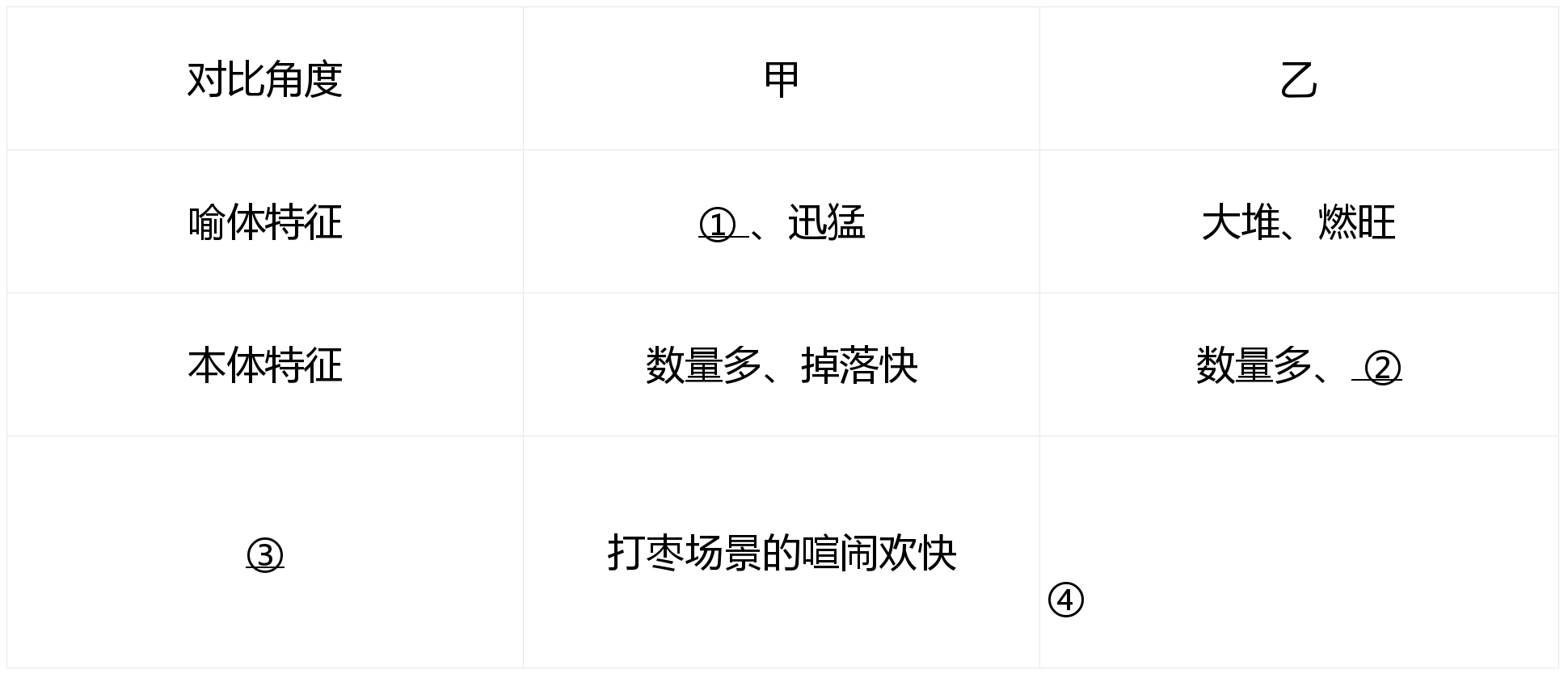 21.阅读文中甲、乙两处关于枣子的比喻句,完成下列表格。(5分)