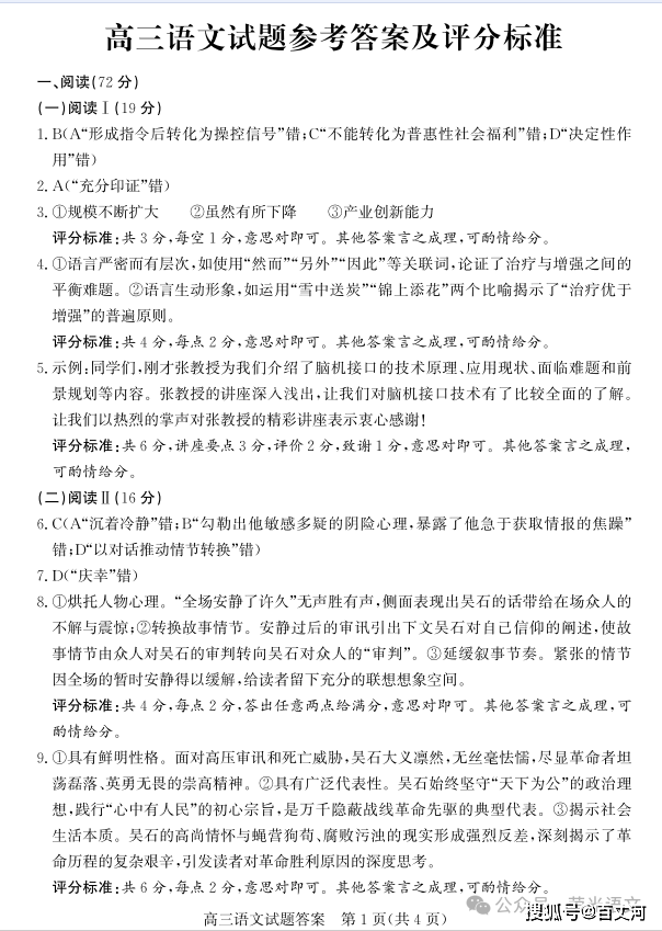 10.材料二画波浪线的部分有三处需要断句,请用铅笔将答题卡上相应位置的答案标号涂黑,每涂对一处给1分,涂黑超过三处不给分。(3分)