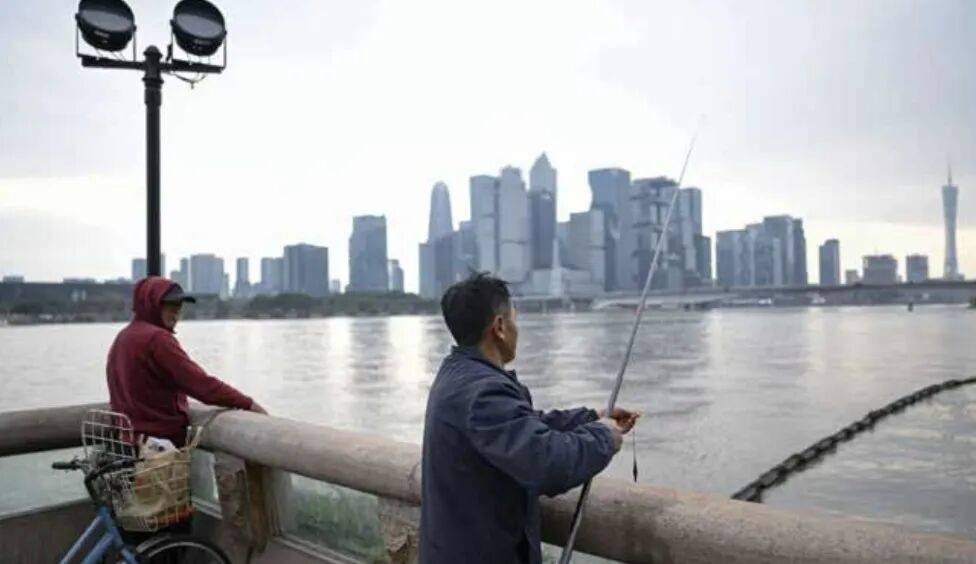 2026年2月9日,广东广州。在科技公司扎堆的琵洲CBD对岸,有市民在工作日悠闲地钓鱼。(图/Zhong)