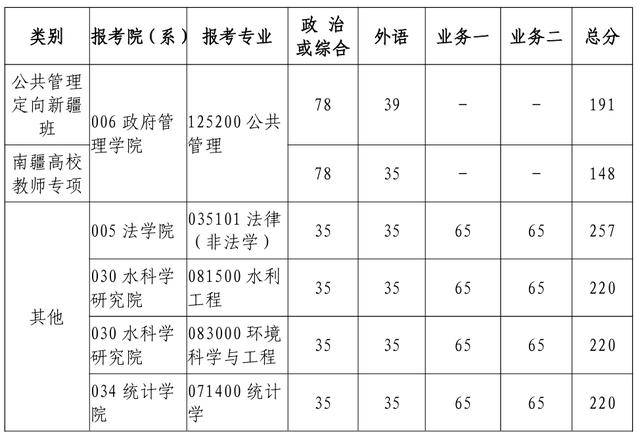 享受少数民族照顾政策的考生(指工作单位和户籍在国务院公布的民族区域自治地方,且定向就业为原单位的少数民族在职人员考生):按照所报考院系(专业)复试分数线,总分线降10分,单科线不降。符合条件并在网上报名时申请享受照顾政策的考生须在所报考院系复试前向院系提出书面申请,并提交相关证明材料,未按规定申报的,不享受相应照顾政策。