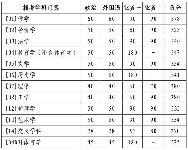 学校复试基本分数线(学术学位类)