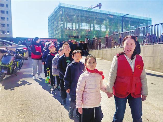 3月11日中午,身穿红马甲的网格员等在小学门口,与老师对接后,护送几名小学生离开。迎来新学期,一些身边没老人帮衬的双职工家庭,遇到接娃难的情况:夫妻下班都晚,来不及接孩子。对此,有社区行动起来,提供护学服务或帮忙联系“小饭桌”,也有邻居主动帮忙,解决了这部分家长的后顾之忧。
