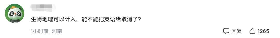 另外,有网友看到“生物地理不再计入中考总分”后,又引发了取消英语的共鸣,有网友表示:生物地理可以计入,能不能把英语给取消了?