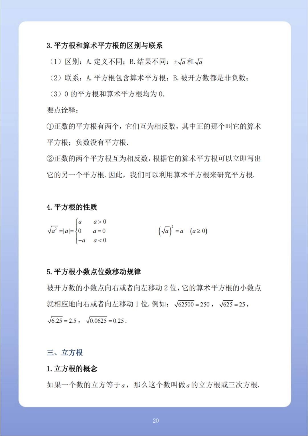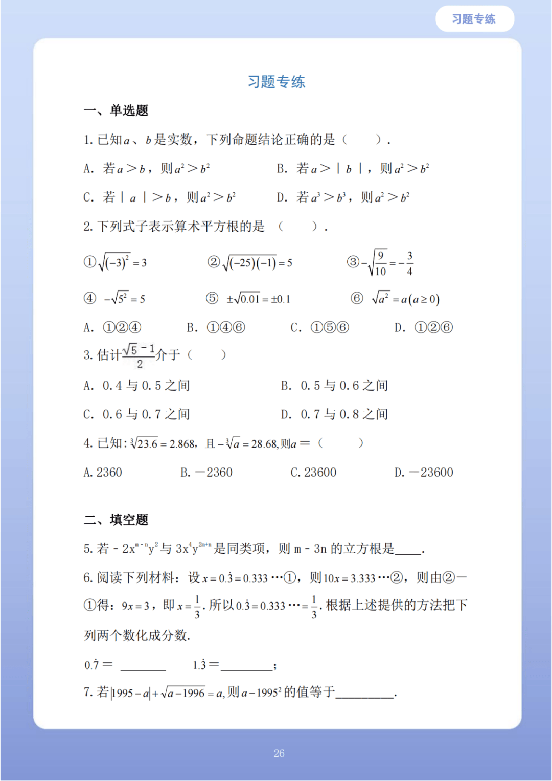 今天老师带来七下实数总结及综合测试题,家长快转给孩子。