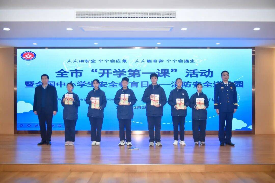 吴兴区妙西镇基层干部冯王奕、市消防救援局特勤消防救援站政治指导员郭威分别围绕楼道畅通、日常风险防范作专题宣讲,结合案例普及消防安全知识。随后,市教育局、市应急管理局、市消防救援局、市科协分管领导为学生代表赠送消防安全及防灾减灾知识读本,希望同学们以书为友、学以致用,把安全理念带回家、带给身边人。南太湖双语学校学生代表发言,分享学习感悟,表达了争当安全守护者的决心。