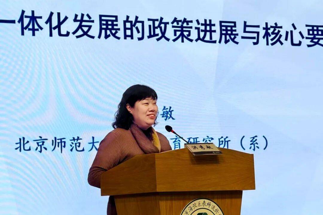 北京师范大学学前教育研究所所长、教授洪秀敏应邀作《托幼一体化发展的政策进展与核心要求》专题讲座。洪秀敏从我国人口发展新形势切入,深刻阐释了托幼一体化的时代定位与战略价值。她指出,推进托幼一体化发展,既是积极落实生育支持政策的关键举措,也是建设教育强国的奠基工程。她强调,托幼一体化不是简单的合并或业务叠加,而是0—6岁学前教育全程贯通、内在统一的系统性重构。她提出,托幼一体化发展须坚守安全、健康、法治、师德四条底线,着力培养“懂法、有爱、专业、会照护”的复合型教师。