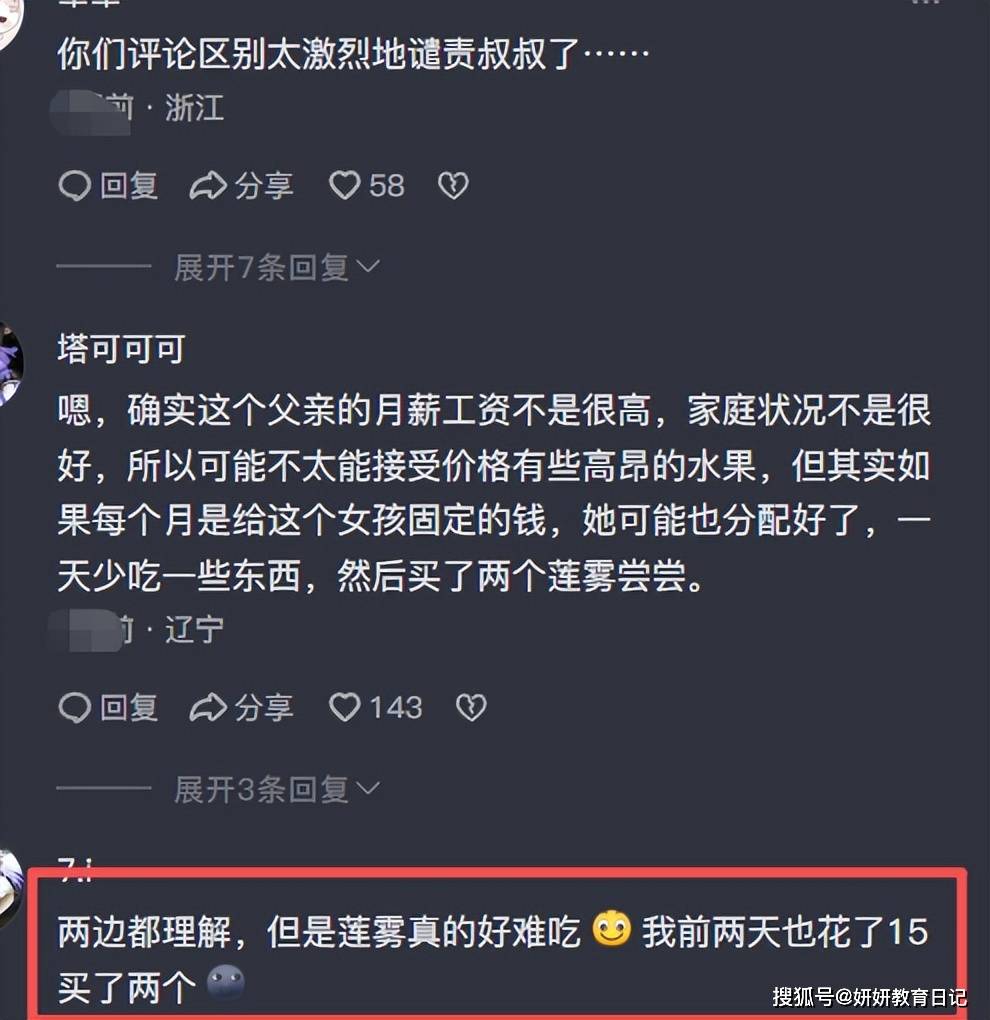 但为什么非要花15块钱买两个莲雾呢,这么小的水果确实不值这个价。一些不那么成熟的孩子,也许在上高中或是大学,第一反应就是看不起这位父亲。