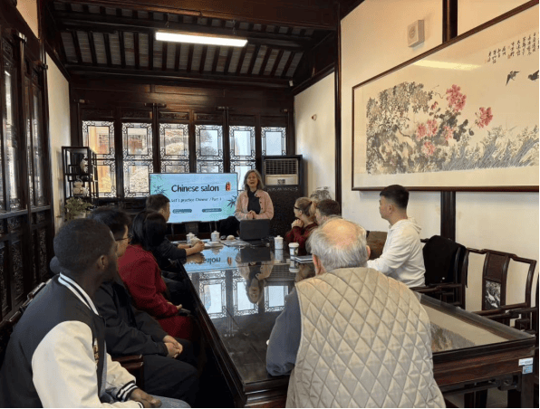 2026年3月21日,由苏州市汉语国际推广中心、走遍苏州 Album of Suzhou和苏州科技大学外国语学院共同主办的苏州市汉语国际推广沙龙在苏州教育博物馆温馨开讲。此次沙龙由Patrick Qu特邀来自德国的Ilka爱卡老师担任主讲。爱卡老师一开场便感叹,选择在教育博物馆这样一个充满人文底蕴的地方学习中文,再合适不过了。十余位中外汉语学习爱好者齐聚一堂,在轻松互动的氛围中感受汉语魅力,解锁高效的中文学习方法。