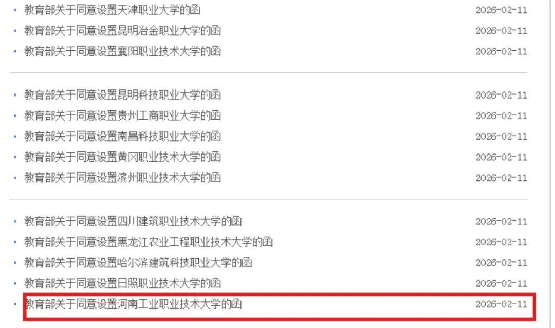 近日,教育部发布了一批同意高等学校设置的函,涉及11所高校更名大学、15所职业本科设置。其中,同意以河南工业职业技术学院为基础设立河南工业职业技术大学,该校升格为公办本科层次职业学校。