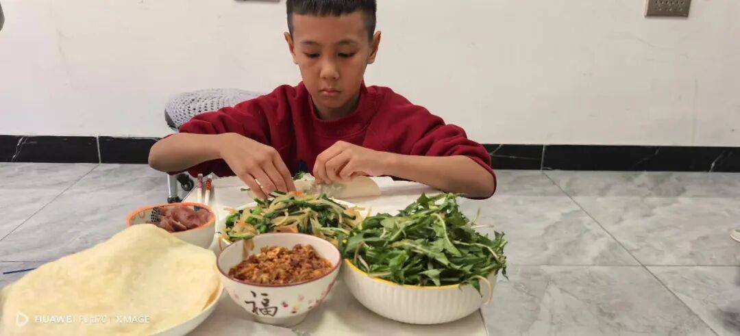 紧扣“春分吃春菜”民俗,活动延伸至家庭。孩子们在家人陪伴下,认识荠菜、春笋等时令鲜蔬,了解食春菜的吉祥寓意,亲手清洗打理春菜,在劳动中体会食材珍贵,让节气文化融入烟火日常,变得可感可触可尝。