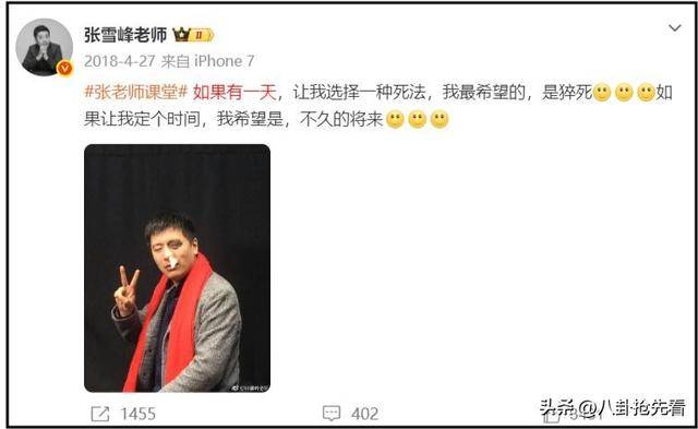早在一八年的时候就曾预料过自己的死亡方式,结果如今预言真的成真了,也希望张老师一路走好,曾接受过他指导的学子也会一直记着他。