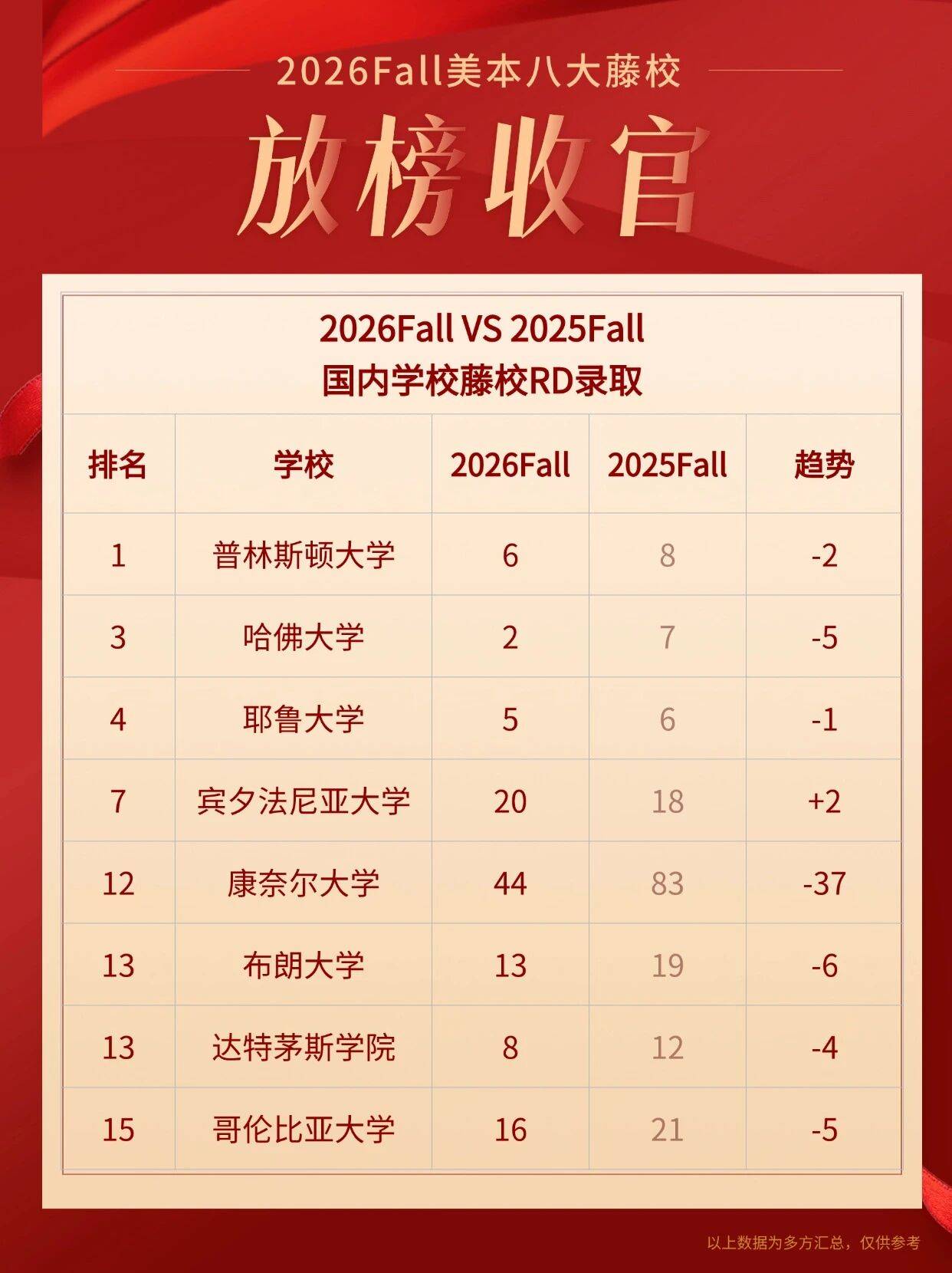 昨日美本八大藤校RD放榜,又掀起了家长们的热烈讨论!