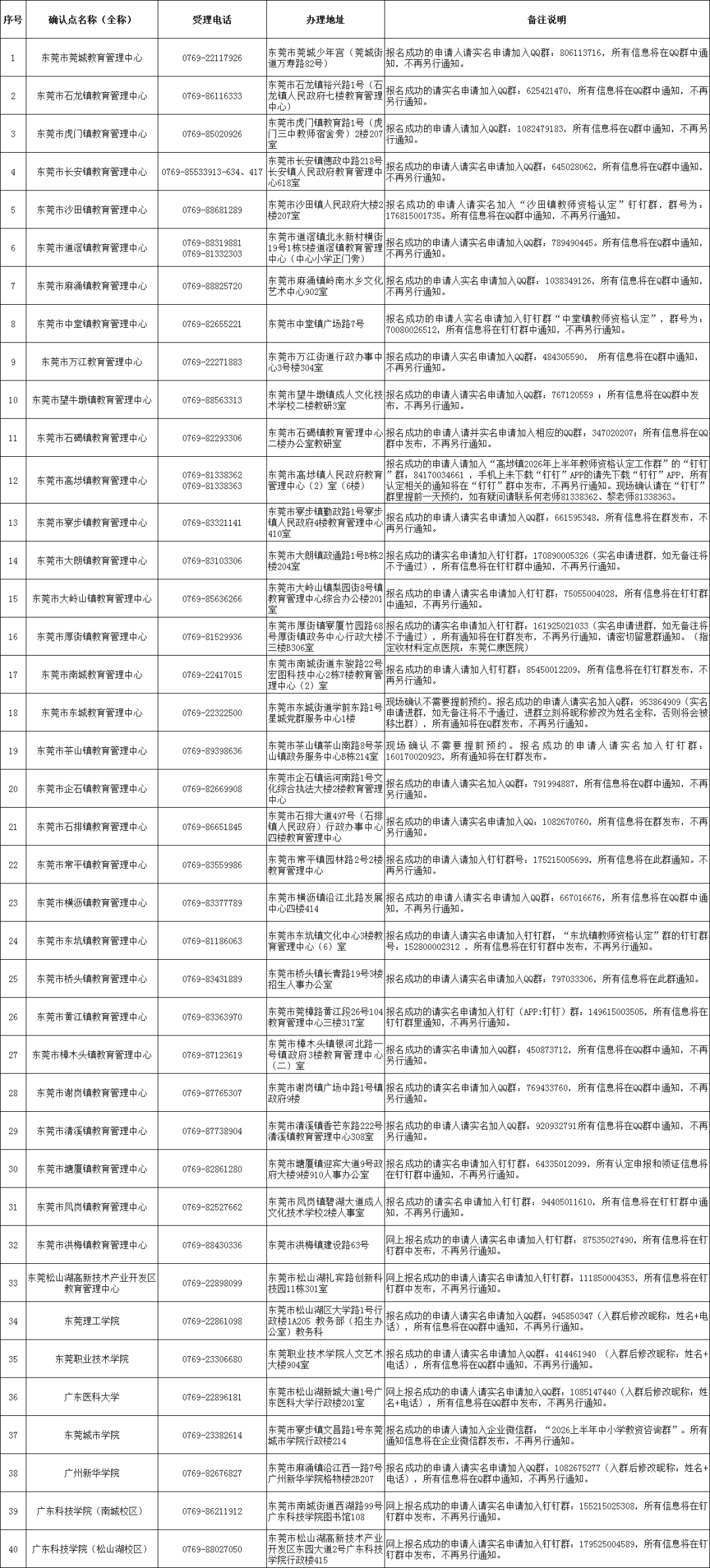 (六)更多中小学教师资格认定相关信息,敬请关注“中国教师资格网”“东莞市教育局”官方网站和“东莞慧教育”微信公众号。如有疑问,可致电确认点,确认点联系方式见附件6。