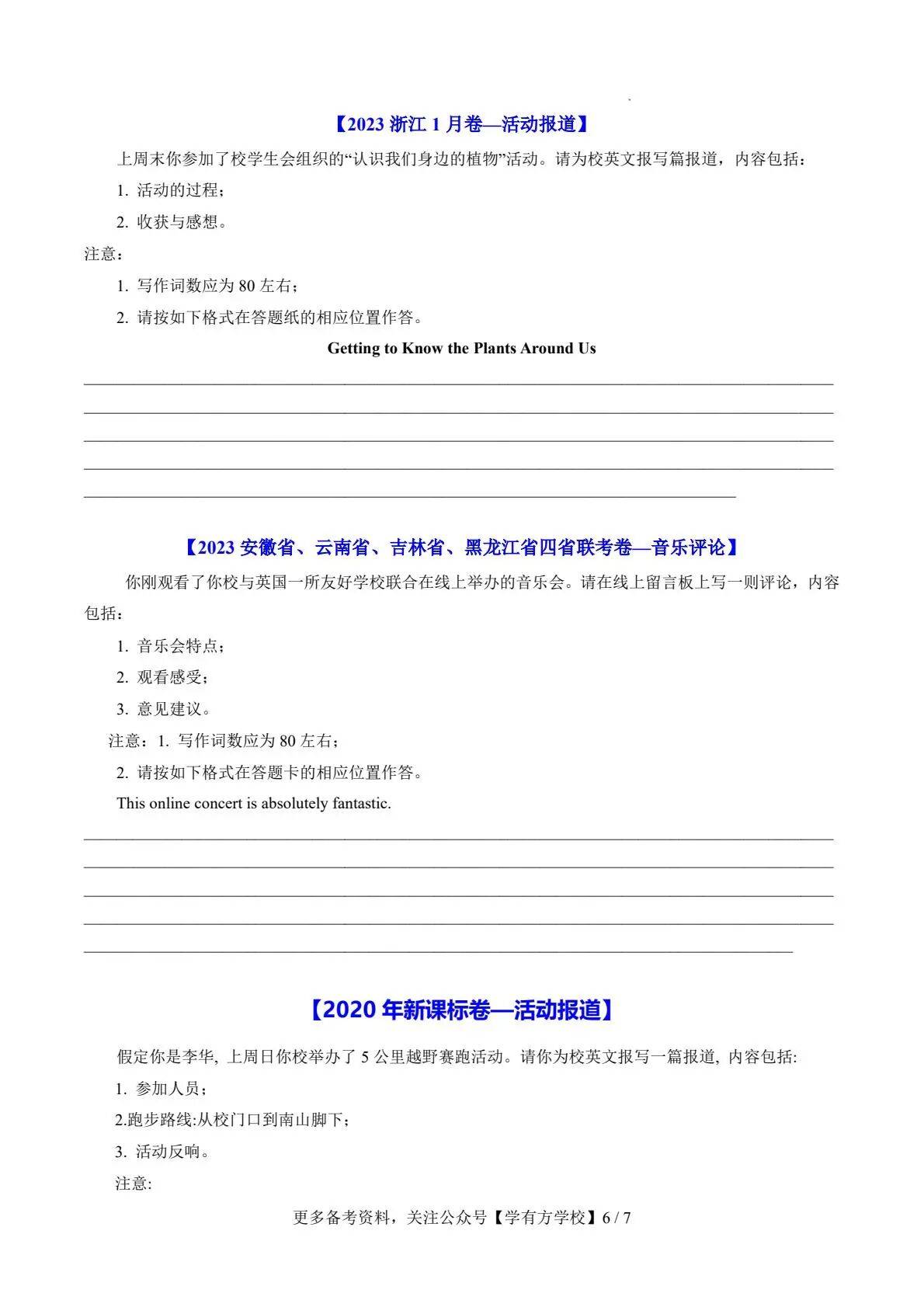 ? 非书信体(5年考了6次):演讲稿、活动通知、短文投稿、报道、评论…浙江卷最爱!