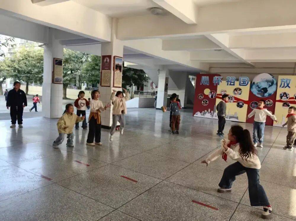 学校打破“仅限操场活动”的局限,打造楼层微运动区、走廊游戏区、角落休闲区三大空间:地面彩绘跳房子、数字迷宫,楼道配备跳绳、沙包等轻便器材,实现“下楼能跑、走廊可玩、就近可动”,让小空间释放大快乐。
