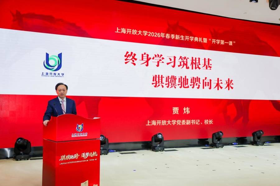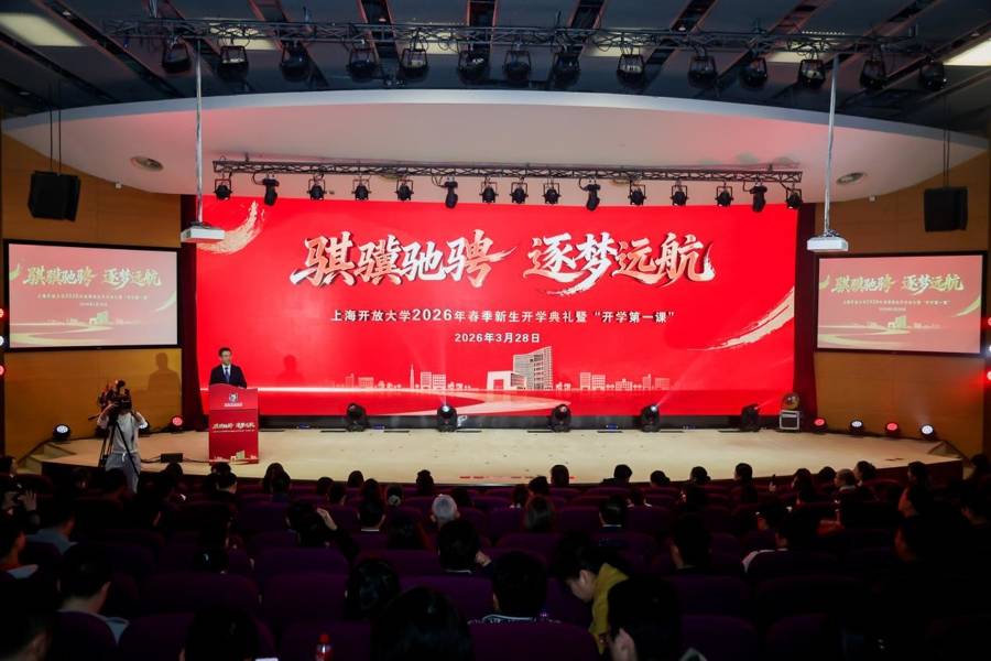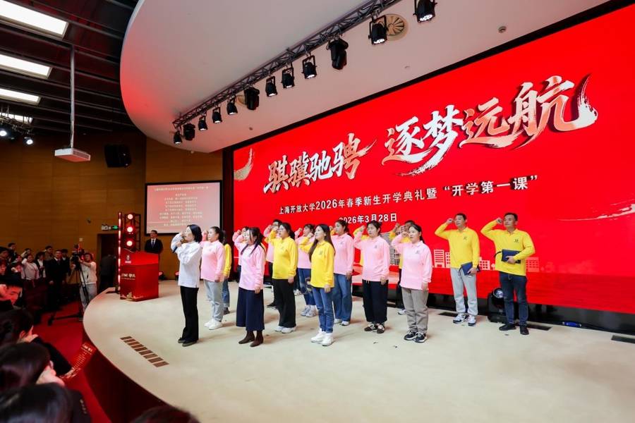 在上海,有这样一所大学,新生中年龄最长的为77岁,年龄最小的刚17岁,但是他们因学习相聚,为成长同行。昨天,上海开放大学举行2026年春季新生开学典礼,1.7万余名新生跨越年龄、职业、地域的界限,在总校现场及全市33所分校通过网络直播的方式共迎新学期。
