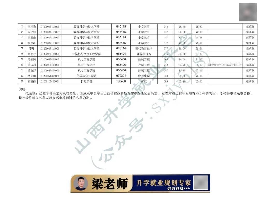 山西大同大学2026年硕士研究生招生考试考生拟录取名单(一志愿)公示