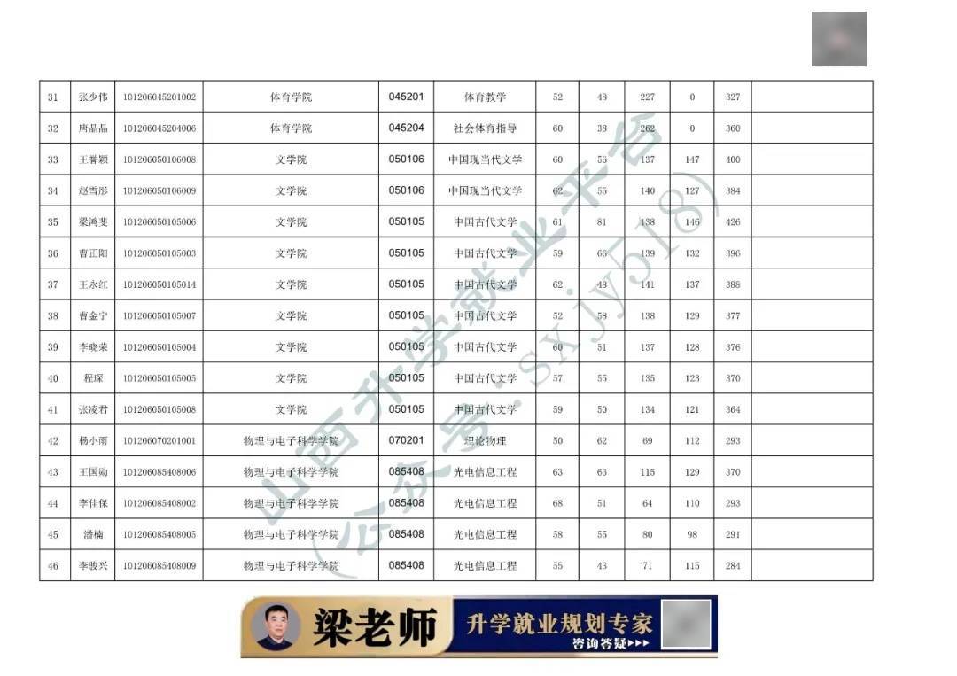 山西大同大学2026年硕士研究生招生考试一志愿进入复试名单