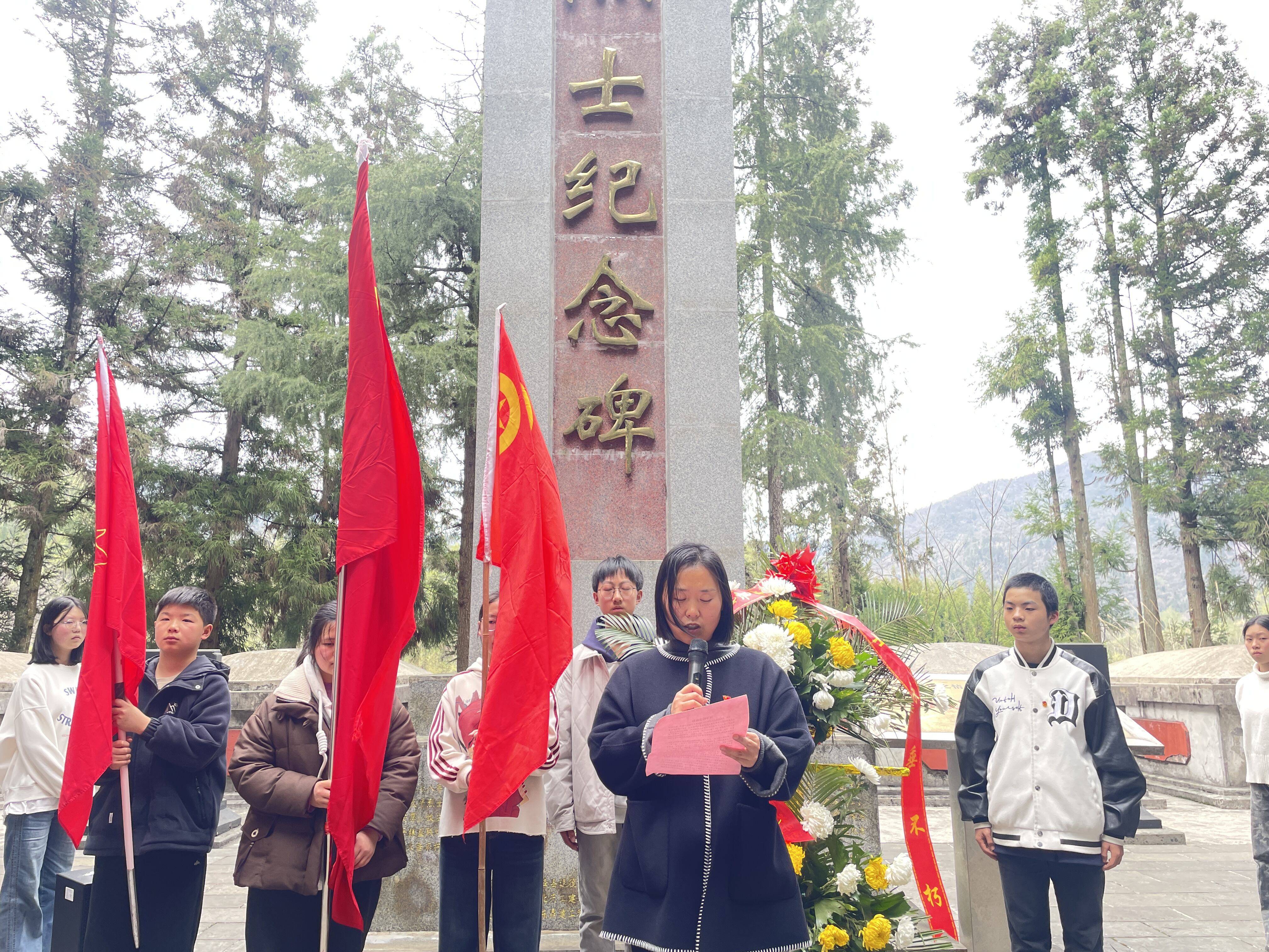 云上恩施报道(鹤峰通联记者 汪正玺 通讯员 覃遵蓉)3月27日下午,鹤峰县太平镇民族中心学校将思政课堂“搬”进烈士陵园,组织全校师生及退休教师代表前往太平镇盛联钧革命烈士陵园,开展清明祭英烈主题教育活动,让师生们在庄严肃穆的仪式中缅怀革命先烈,在行走与实践中接受红色精神洗礼。