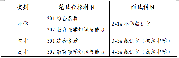 (六)藏语文学科知识与教学能力科目只允许获得“中国少数民族语言文学(藏语言文学)专业大专以上(含)学历”或区内高校中国少数民族语言文学(藏语言文学)专业大三年级以上(含)的在校生报考,面试时自带藏文版专业课教材。