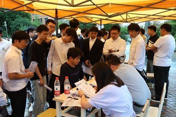 在西南交通大学希望学院校园招聘会现场,学生们围在用人单位招聘摊位前,积极咨询岗位信息。受访者供图