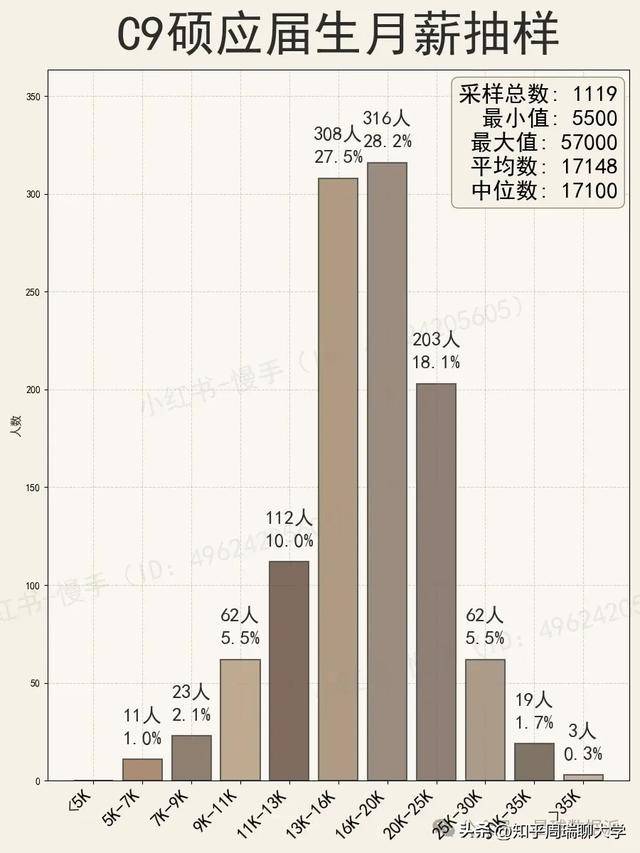 这份月薪抽样数据,从一开始就带着强烈的 “精英滤镜”—— 样本并非全量应届生,而是主动参与分享的 C9 与清北毕业生,这意味着数据本身就偏向于愿意公开薪资、且大概率处于就业市场优势位置的群体。但即便如此,它依然撕开了名校学历与薪酬之间的真实褶皱,让我们得以窥见顶尖高校毕业生的收入基本面。
