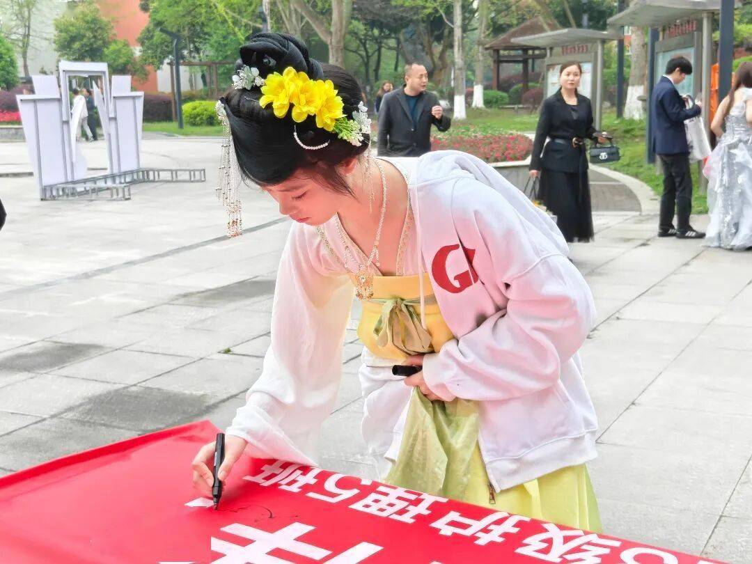 清晨的校园里,高三学子身着精心准备的礼服,分班合影,随后在父母亲人的陪伴下踩着红毯、签下姓名,将青春的印记留在这场专属仪式里。循环播放的教师祝福视频率先暖场——屏幕里,老师们说着“孩子们,你们不是一个人在战斗”“高考加油,我们等你凯旋”,话语里的温度让不少学生红了眼眶,温馨的氛围弥漫在每一个角落。