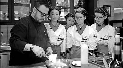 ①西式烹饪工艺专业学生在金陵饭店进行西餐跟岗实训。