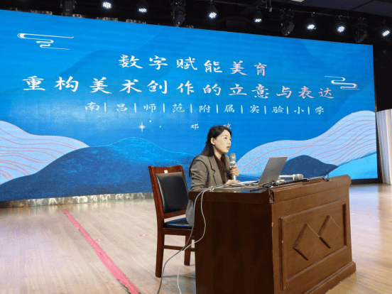 当传统古画在AI技术中“活”起来,美育的边界也随之拓展。南昌市小学美术兼职教研员邓琼以央媒AI古画活化项目《提笔》等前沿案例为引,带来《数字赋能美育 重构美术创作的立意和表达》的分享。她生动展示了数字技术如何为传统艺术注入新生,系统探讨了AI在辅助立意构思、优化表达形式等方面的创新策略。