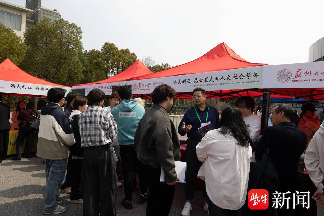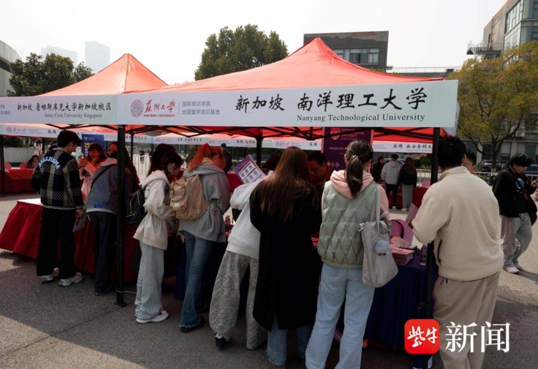 扬子晚报/紫牛新闻记者现场看到,本届出国留学展聚焦学生留学核心需求,打造了精准化、一站式的留学咨询服务平台。新加坡南洋理工大学、英国伯明翰大学、南安普顿大学等海内外知名院校招生代表现场坐镇,为学生提供“一对一”招生咨询,展位覆盖多个热门留学国家与专业方向,同步输出升学、就业相关精准信息。苏州大学留学指导服务中心也全程驻场,为学子提供从申请筹备、签证办理到海外住宿的全环节专业指导,全方位护航留学之路。