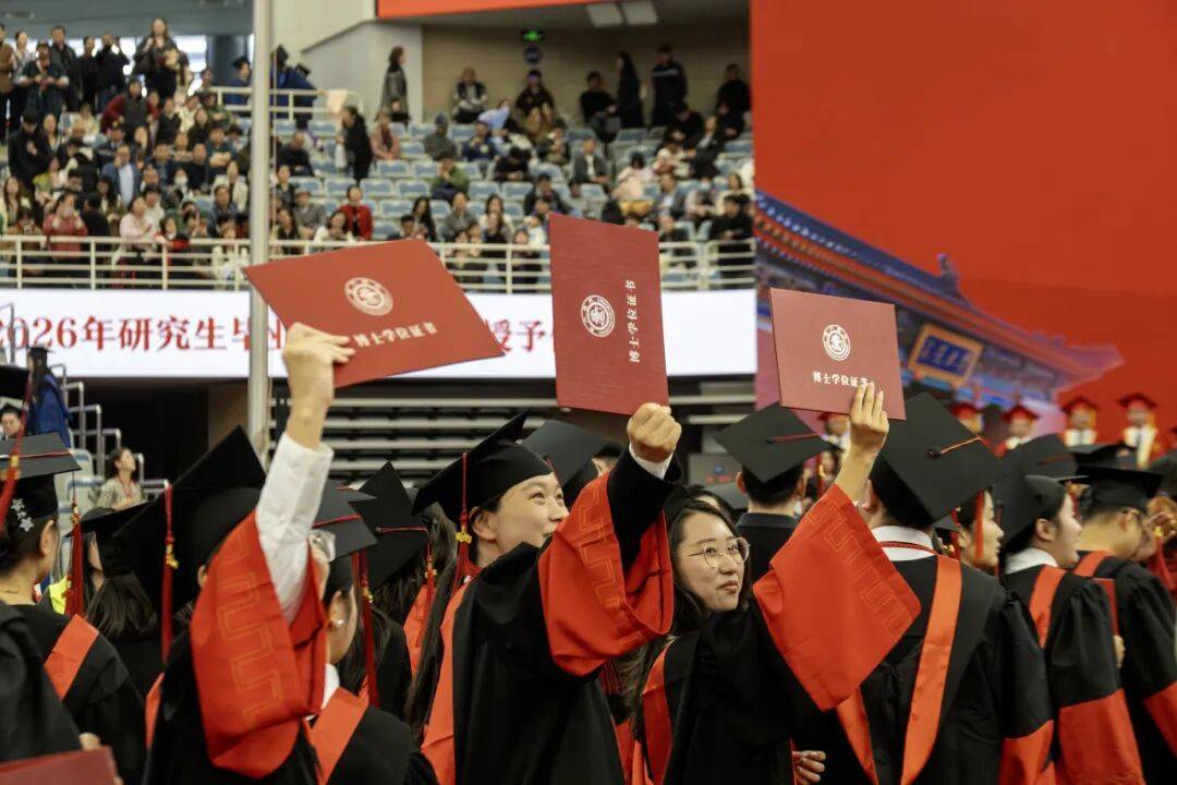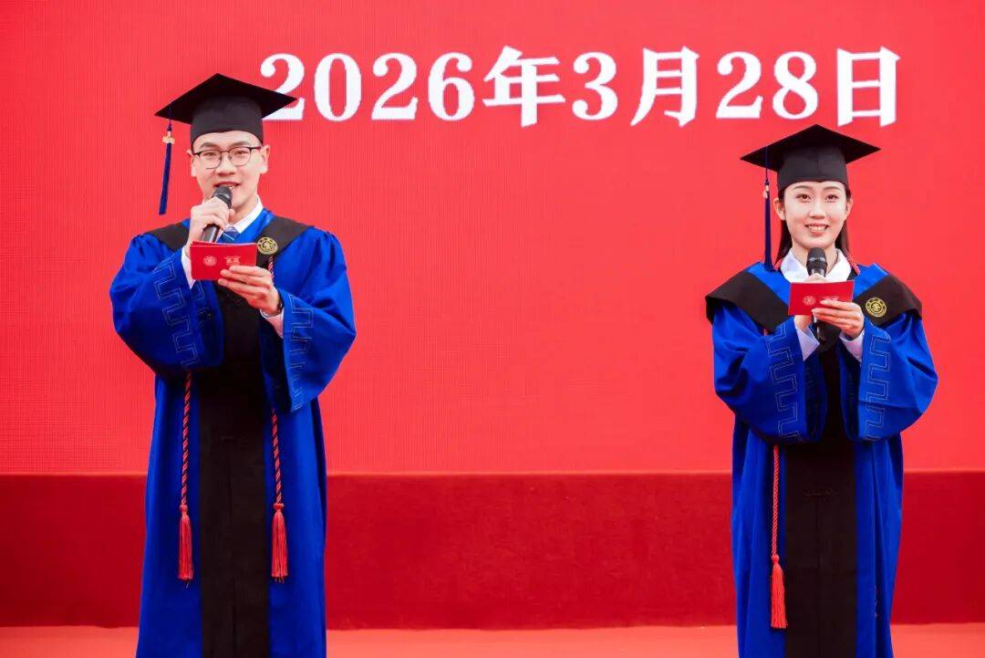 校长、中国科学院院士丁奎岭深情寄语毕业生。校领导、教师代表、校友代表、各院系及部处负责同志、毕业生亲友代表等参加典礼,共同送别2026届研究生毕业生。