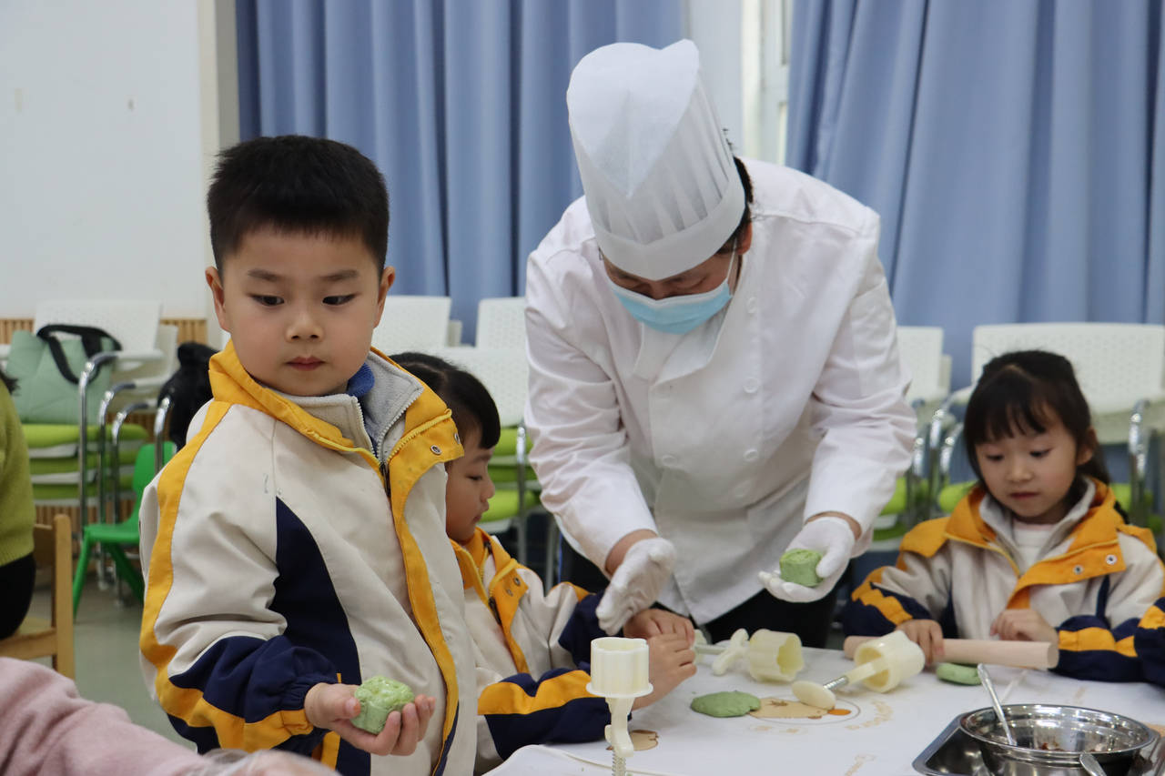 学校后勤团队准备了造型可爱的模具与卡通图案操作垫,还把传统食俗知识融入活动中,让孩子们在玩中学、做中悟。