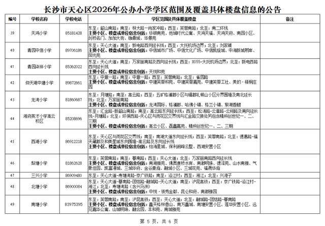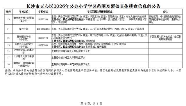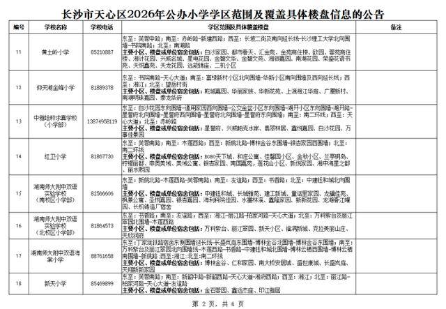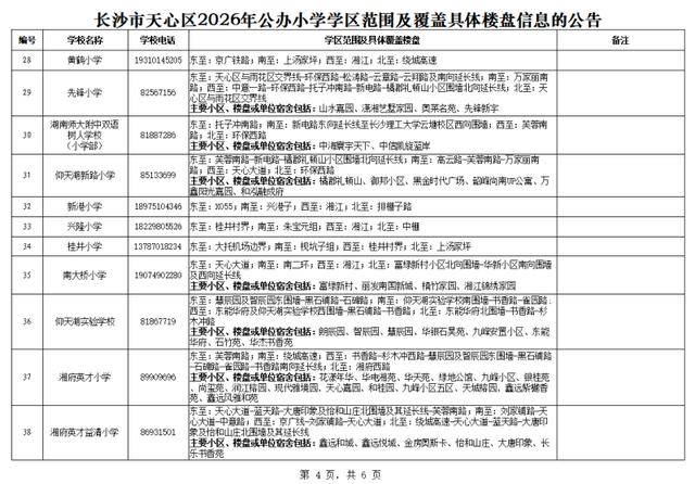 长沙晚报掌上长沙4月1日讯(全媒体记者 张炎炎)今日,天心区教育局公布了该区2026年公办小学学区范围及覆盖具体楼盘信息,家长们可及时关注。