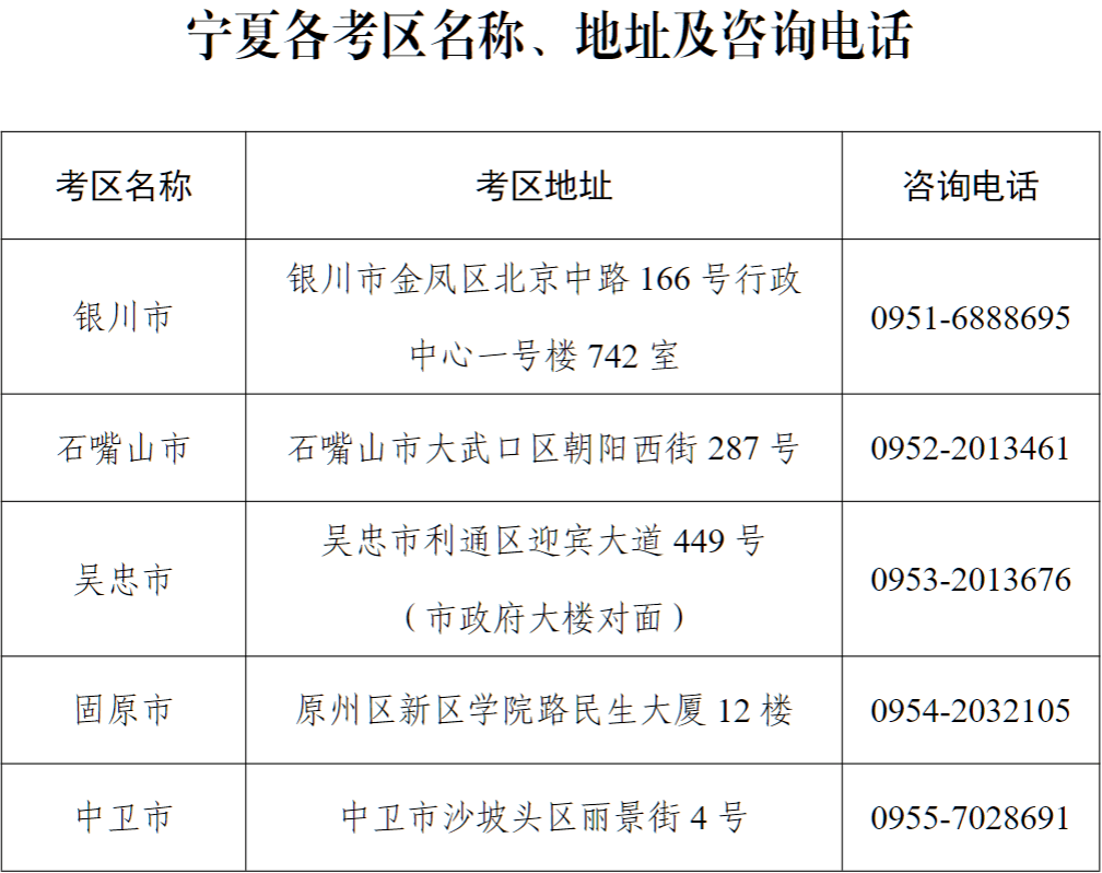 4.宁夏各考区名称、地址及咨询电话