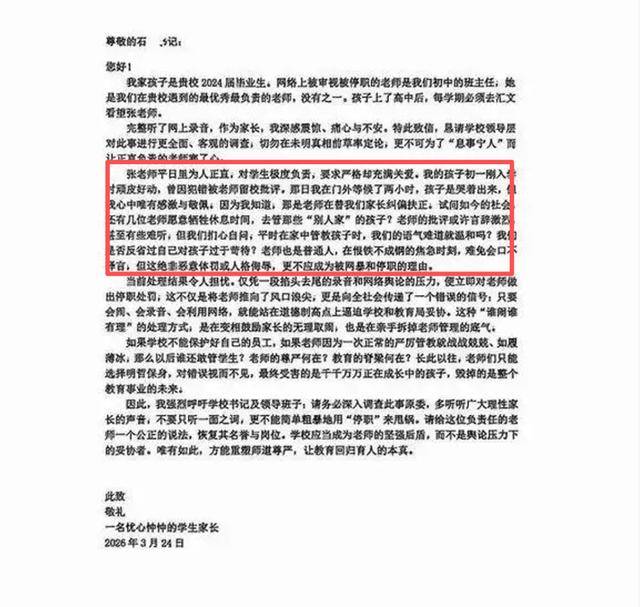 一大批在校家长、往届学生家长,联名写下了一封为张老师正名的长信,他们口中的张老师是孩子求学路上遇到过最优秀、最负责的好老师。