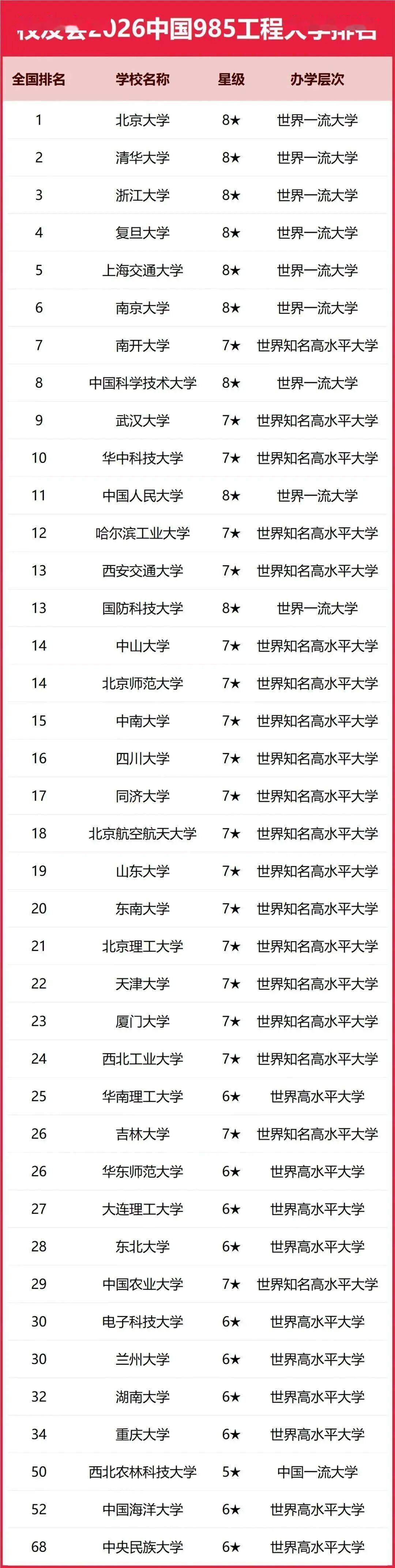 此次校友会2026中国985工程大学排名的公布,不仅展示了各高校的实力与特色,更为广大考生提供了宝贵的参考信息。希望广大考生能够根据自己的兴趣和职业规划,选择适合自己的高校,开启美好的大学生活。