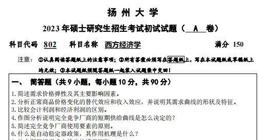 2014-2023年扬州大学802西方经济学考研真题参考答案【答案到23】