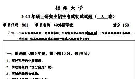 2023年扬州大学801中外哲学史考研真题试卷与参考答案