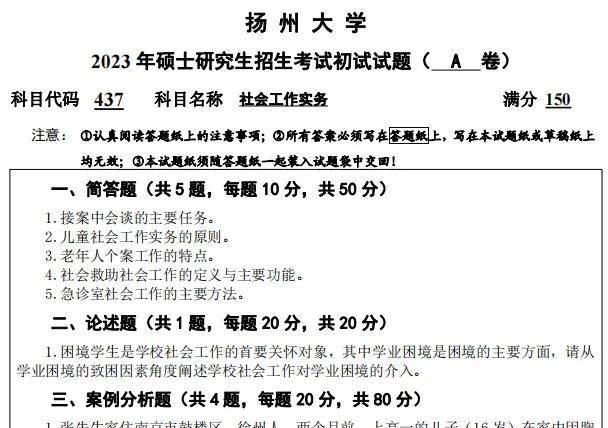 2019-2024年扬州大学437社会工作实务考研真题参考答案【答案到24】