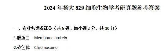 2014-2024年扬州大学829细胞生物学考研真题参考答案【答案到24】