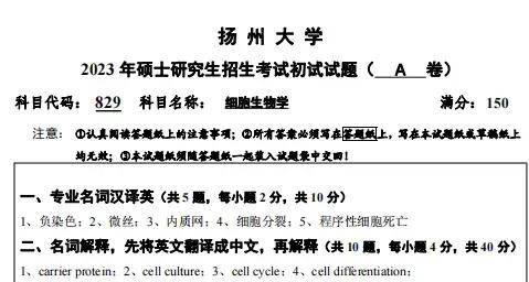 2005-2025年扬州大学829细胞生物学考研真题试卷(不含11-13)