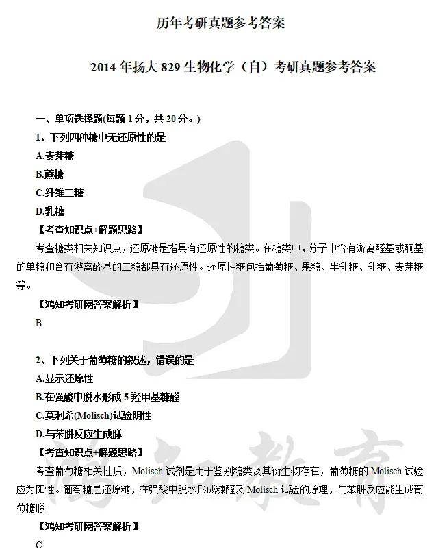 2019-2024年扬州大学338生物化学考研真题参考答案【答案到24】